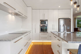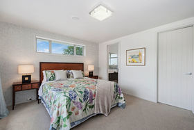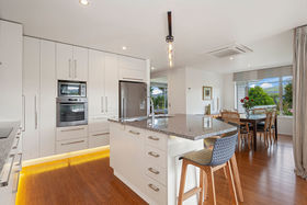 A warm expanse of bamboo flooring flows from the entry to the family room where the designer kitchen awaits. The central island with granite top is placed for optimal views proudly looking through glass sliders to the covered deck and rear-fenced garden. Positioned for ease of use, appointments include an induction hob, double dish-drawers, under bench lighting, and low lights for evening tranquility. Frosty days will be chased away with the wood-burner (connected to a wetback) and there is an in ceiling heat-pump - air conditioner that can be controlled by smart app from afar as well as a domestic ventilation system. The covered deck with built in speakers offers year round outdoor dining and there is a generous formal dining alcove. A carpeted separate lounge with windows to the garden will be a quiet retreat away from the family hub or a great place to watch the rugby undisturbed. The bathrooms are gorgeous with double basins on wall hung vanities, mirror demisters, tiled showers, a back to wall free standing bath and underfloor heating. This is a larger home with four genuine double bedrooms and the master has additional built in cabinetry. The garaging with its smart cedar doors is lined and carpeted with two sets of built in cabinetry along each wall. Wired for television it would make a perfect home gym or man cave.