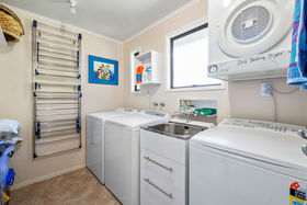 No shortage of space here. The versatile layout features numerous living and dining options, a generous farm house kitchen with walk-in Butlers pantry, games room, office, library and ample storage