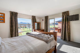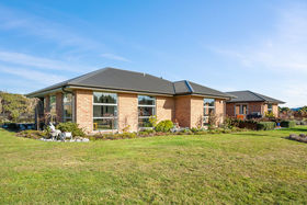 The master bedroom with en-suite and walk in robe leads out onto a private deck adjoining the lounge where breakfast can be had looking out over the fully landscaped section with rural views.