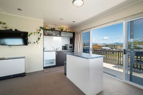 On the lower level is one bedroom, a family bathroom and open planned living, or spaces for bed/bunks with plumbing in place for a downstairs kitchen or kitchenette. Double slider doors open out to the patio and grassed area. Upstairs with internal and external access is another living room with decking, and being Unit 1 and closest to the lake, uninterrupted views of the mountains and Lake Taupo - complete with its own ensuite. This area features a modular kitchen that can be moved around to suit your style - you could even transport this downstairs and convert the upper level to a studio bedroom with views galore! There is a small storage shed outside and a caravan plug if needed.