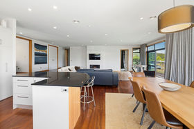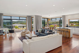 Triple internal-access garaging, along with generous off-street parking, easily accommodates vehicles, boats, and guests"perfect for a Kinloch lifestyle. Step inside and you'll immediately appreciate the sense of space and craftsmanship. Polished native hardwood floors, high stud ceilings, and expansive step-down open-plan living areas create a warm yet refined atmosphere.